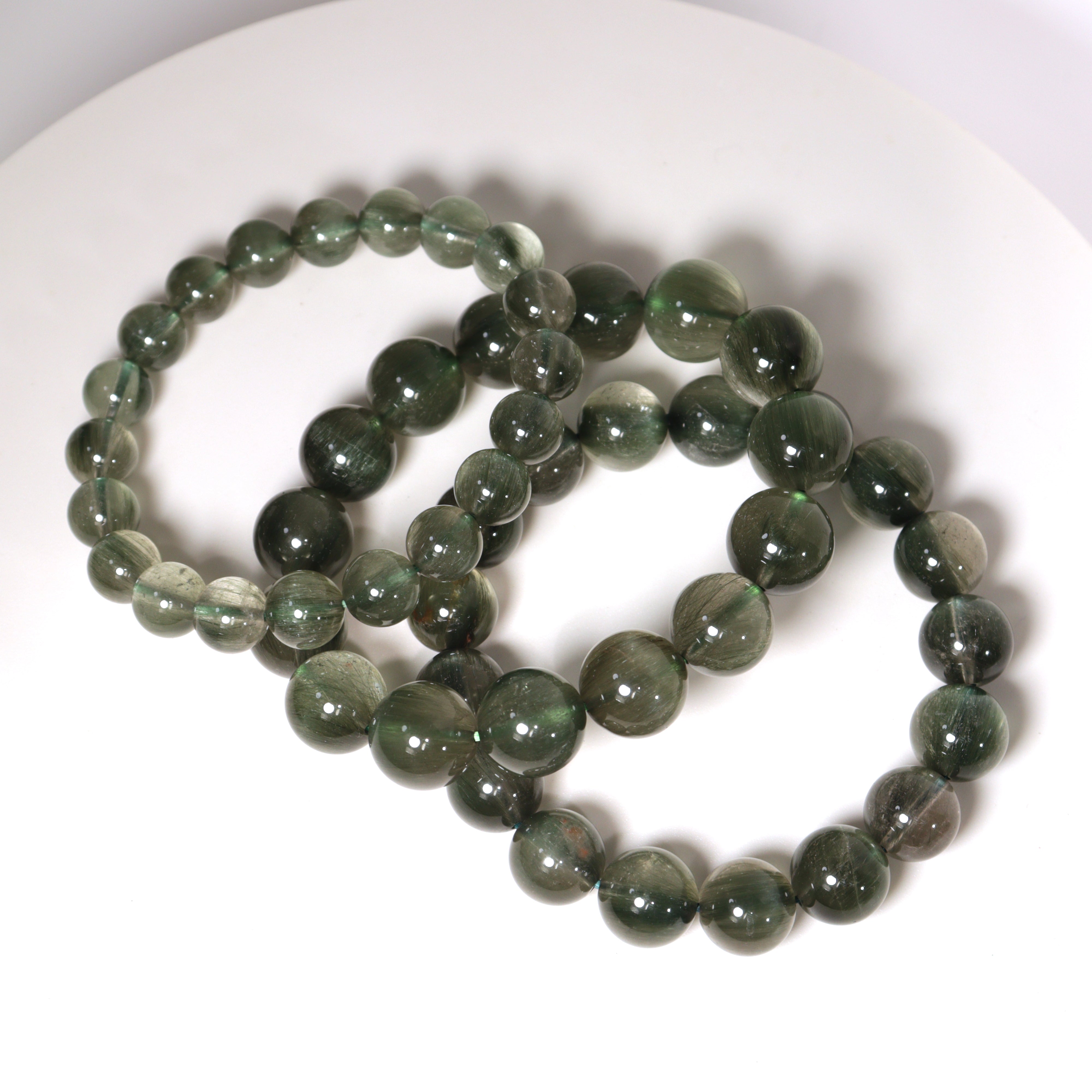 Cat Eye Effect Green Rutilated Quartz Bracelet
